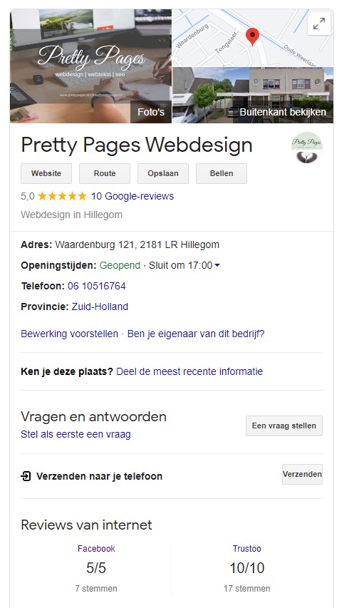 - Verschijnt er rechts geen kader met jouw bedrijfsinformatie? Dan moet jij nog een bedrijfspagina aanmaken.