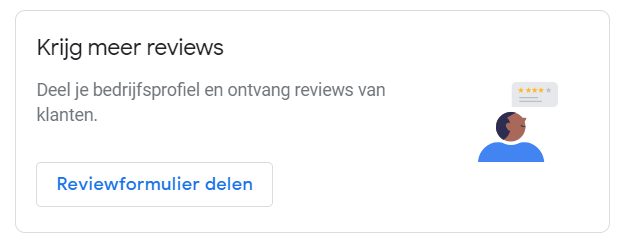 Log nu in op jouw Google bedrijfspagina in Google Mijn Bedrijf. Ga naar Home en scroll naar beneden tot je het onderdeel “meer reviews ontvangen” ziet. Klik op de knop ‘Reviewformulier delen’ om jouw persoonlijke link te krijgen.