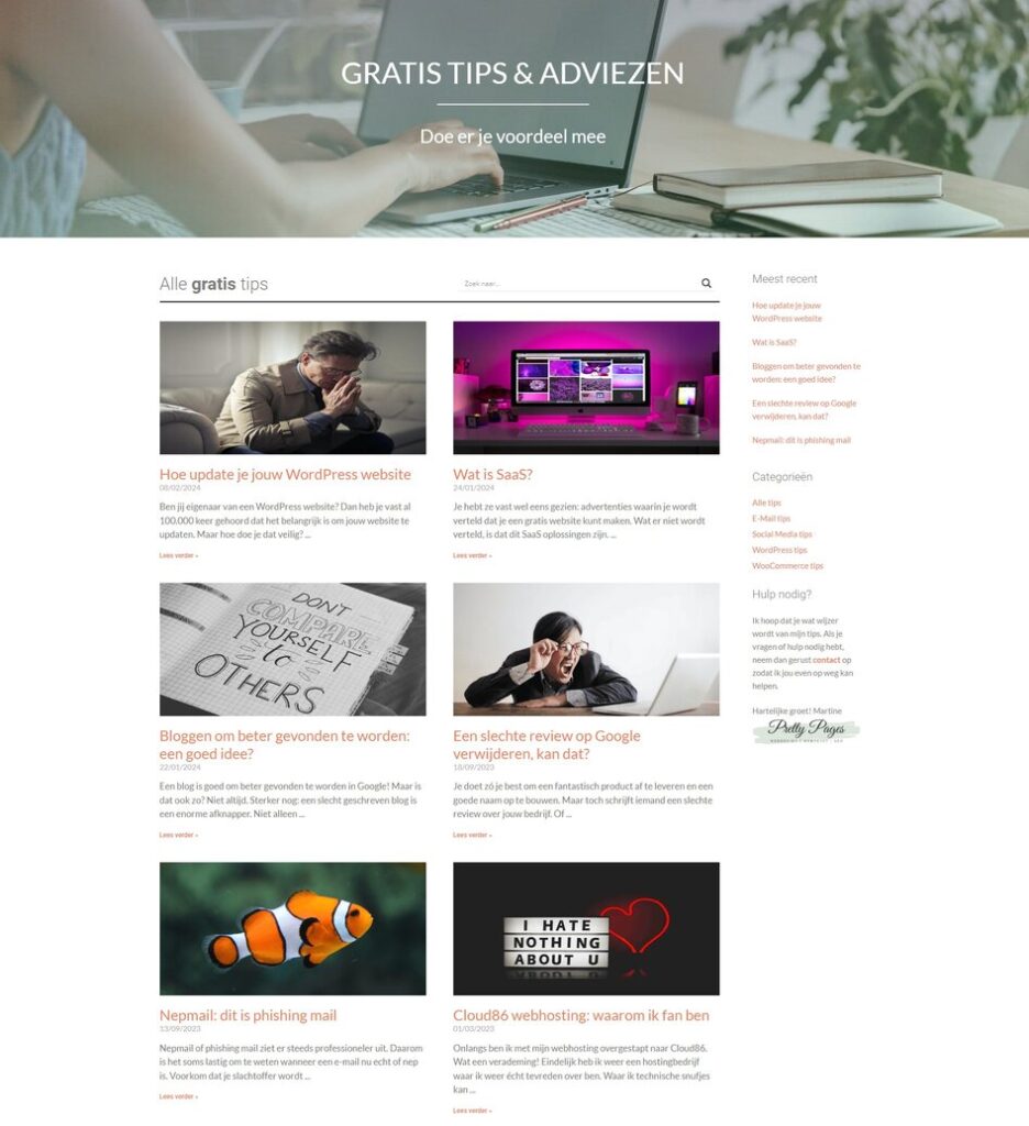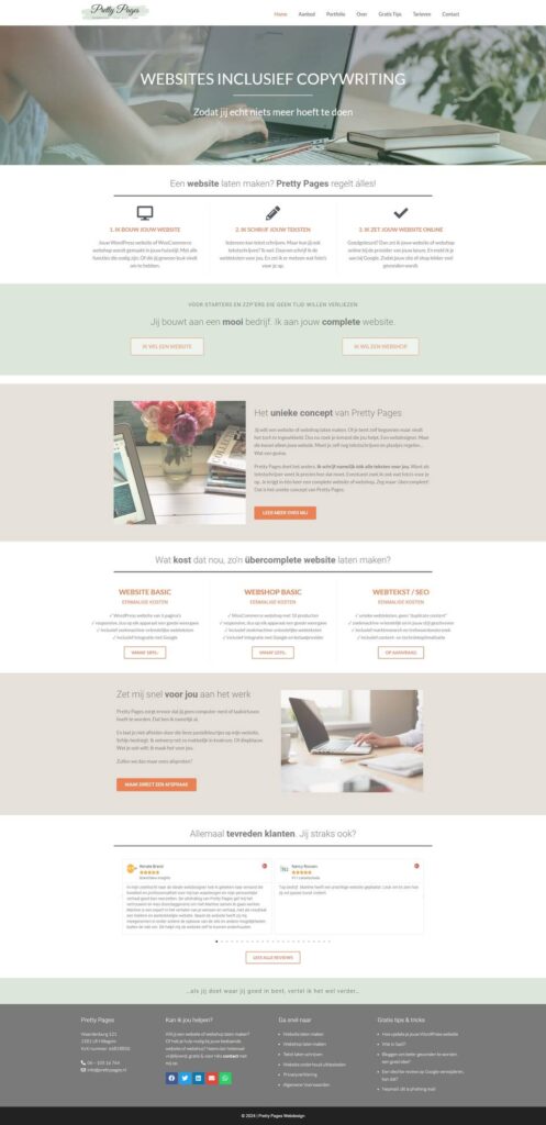 Mijn eerste website voor Pretty Pages bouwde ik in 2016 nog in code. Dat was toen gebruikelijk. Maar inmiddels was de pagebuilder Elementor op de markt gekomen. Daar kon je sneller en makkelijker een WordPress website mee bouwen. Ik wilde weten hoe dat precies werkte, dus besloot ik om mijn website opnieuw te bouwen in Elementor.