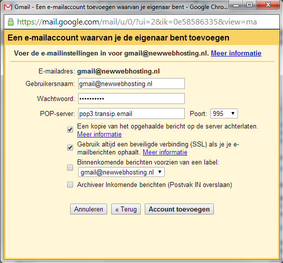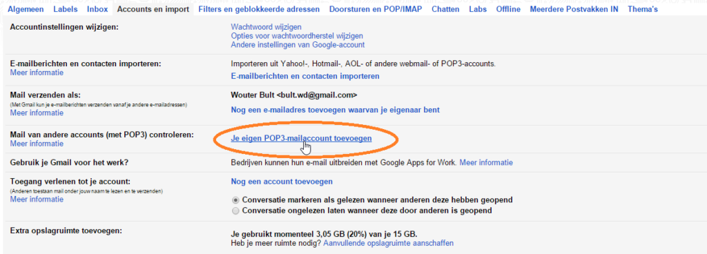 –> klik op Je Eigen POP3 mailaccount toevoegen